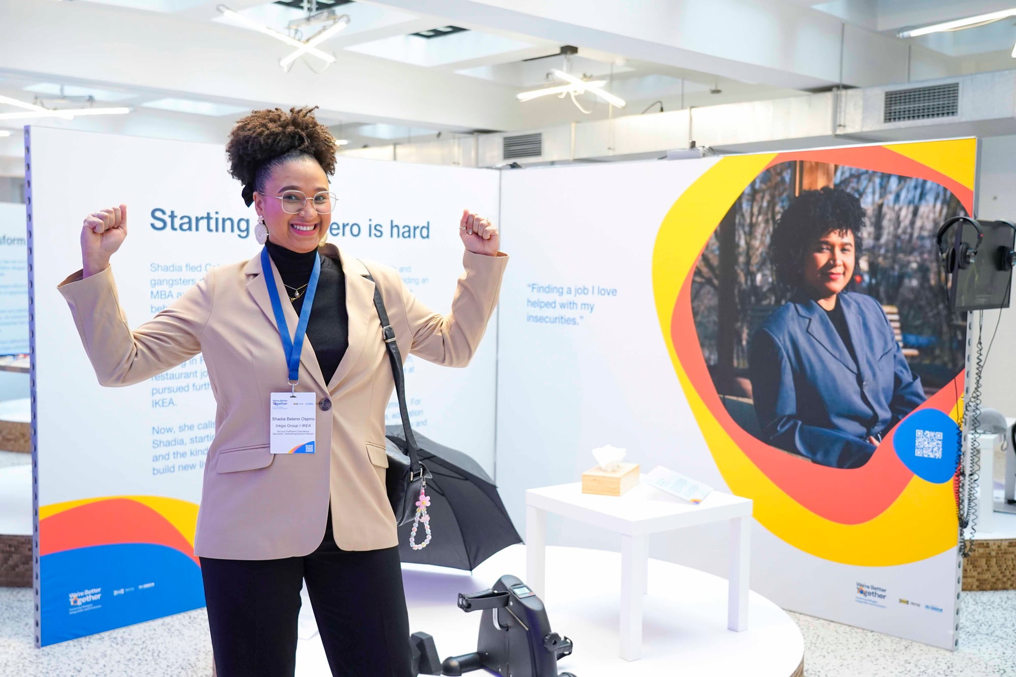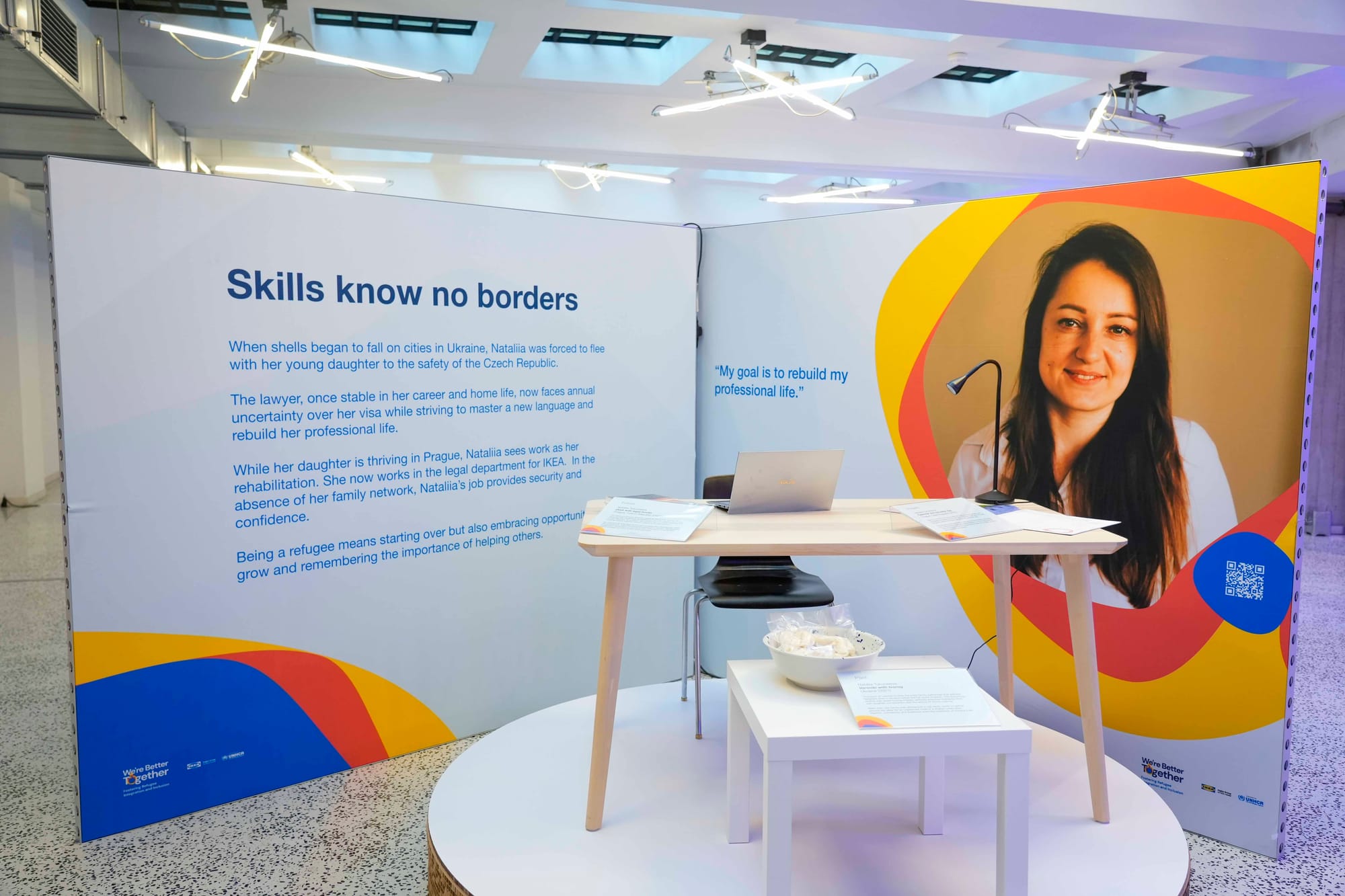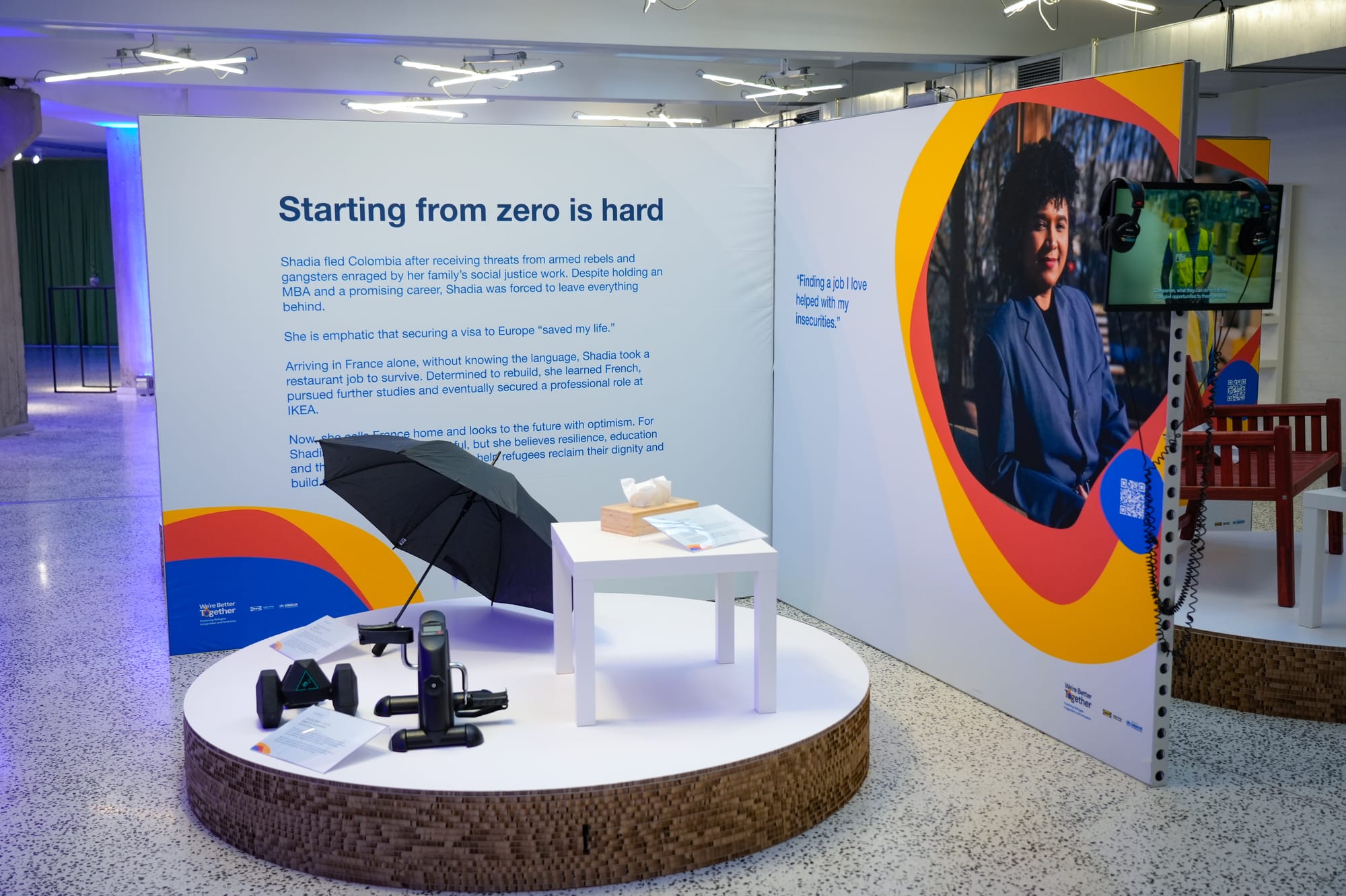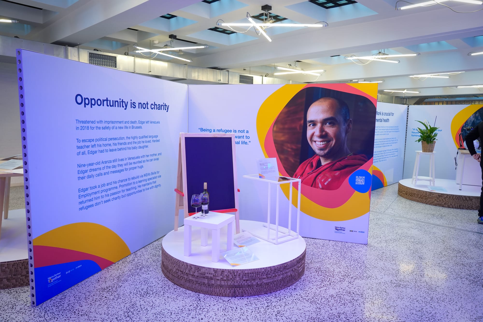 - Exhibition space including interviews with eight refugees, presented within a narrative framework that helped them tell their own story by using Ingka Group | IKEA props
