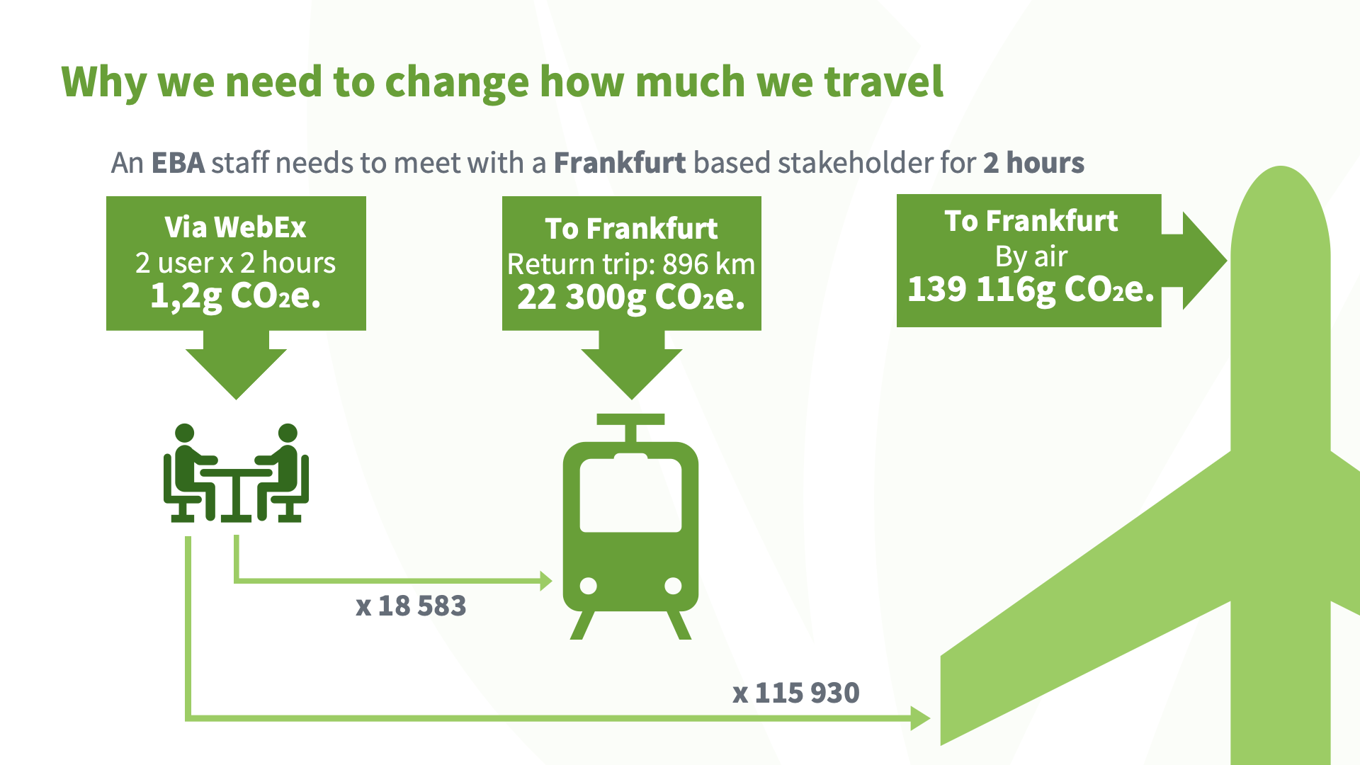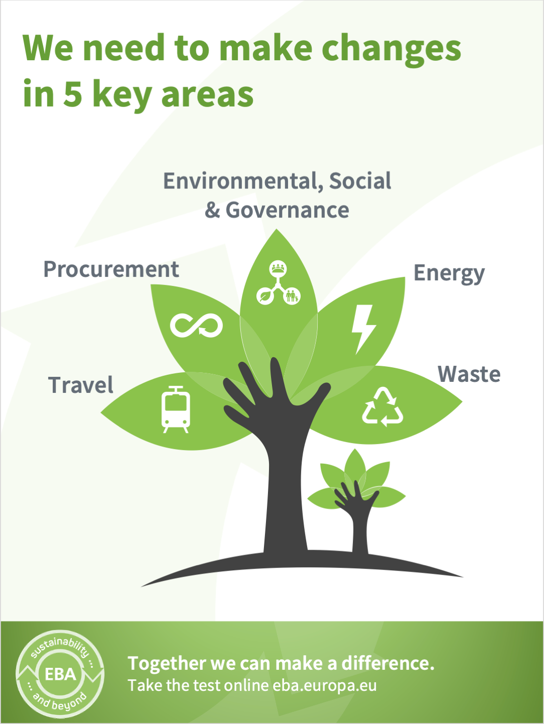 Based on the EBA's environmental policy, we created a behaviour-change communications campaign to specifically address:
