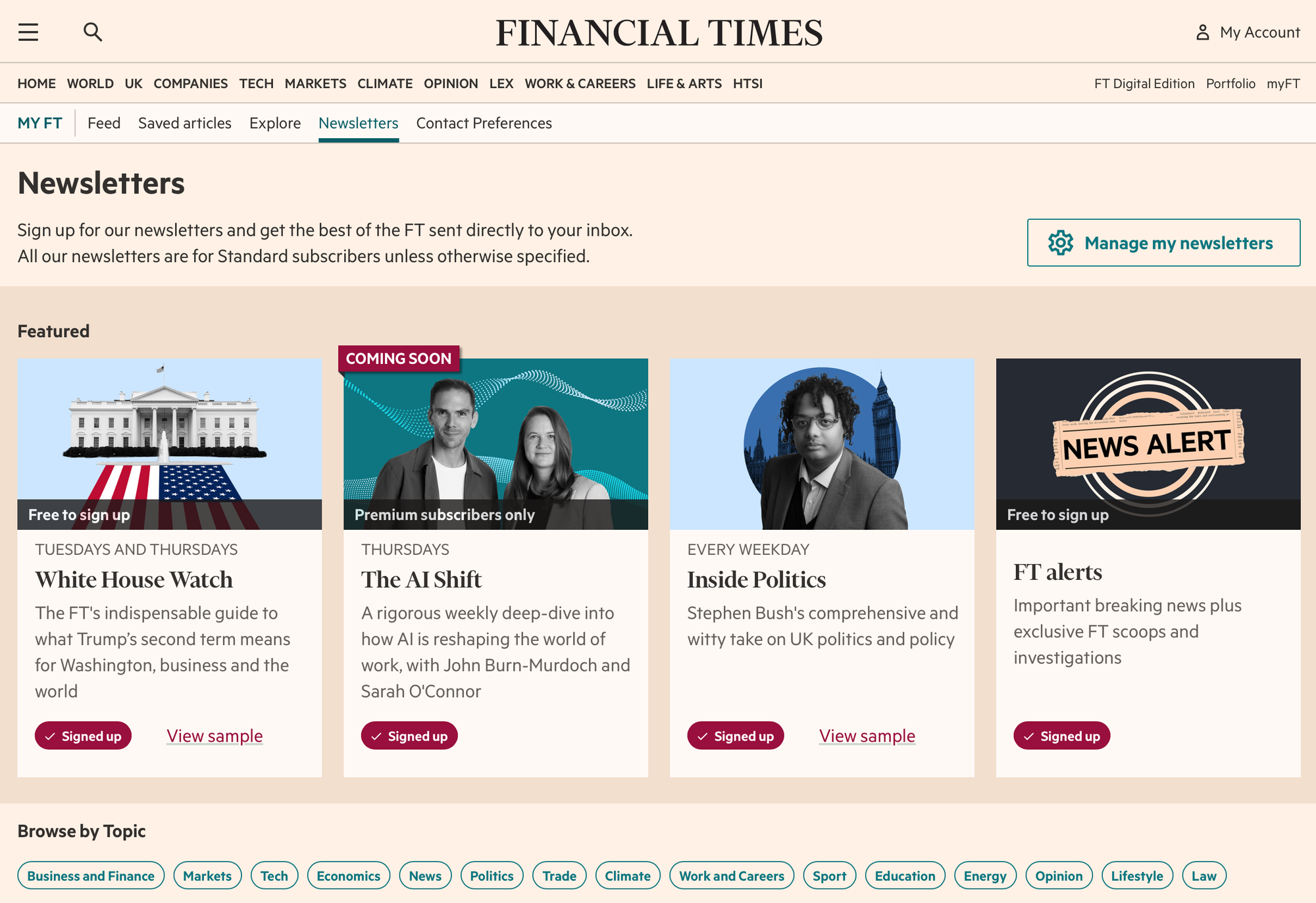 - The FT publishes over 30 newsletters (including my go-to for daily politics, Stephen Bush's Inside Politics newsletter...free with a subscription or £4.99 a month)
