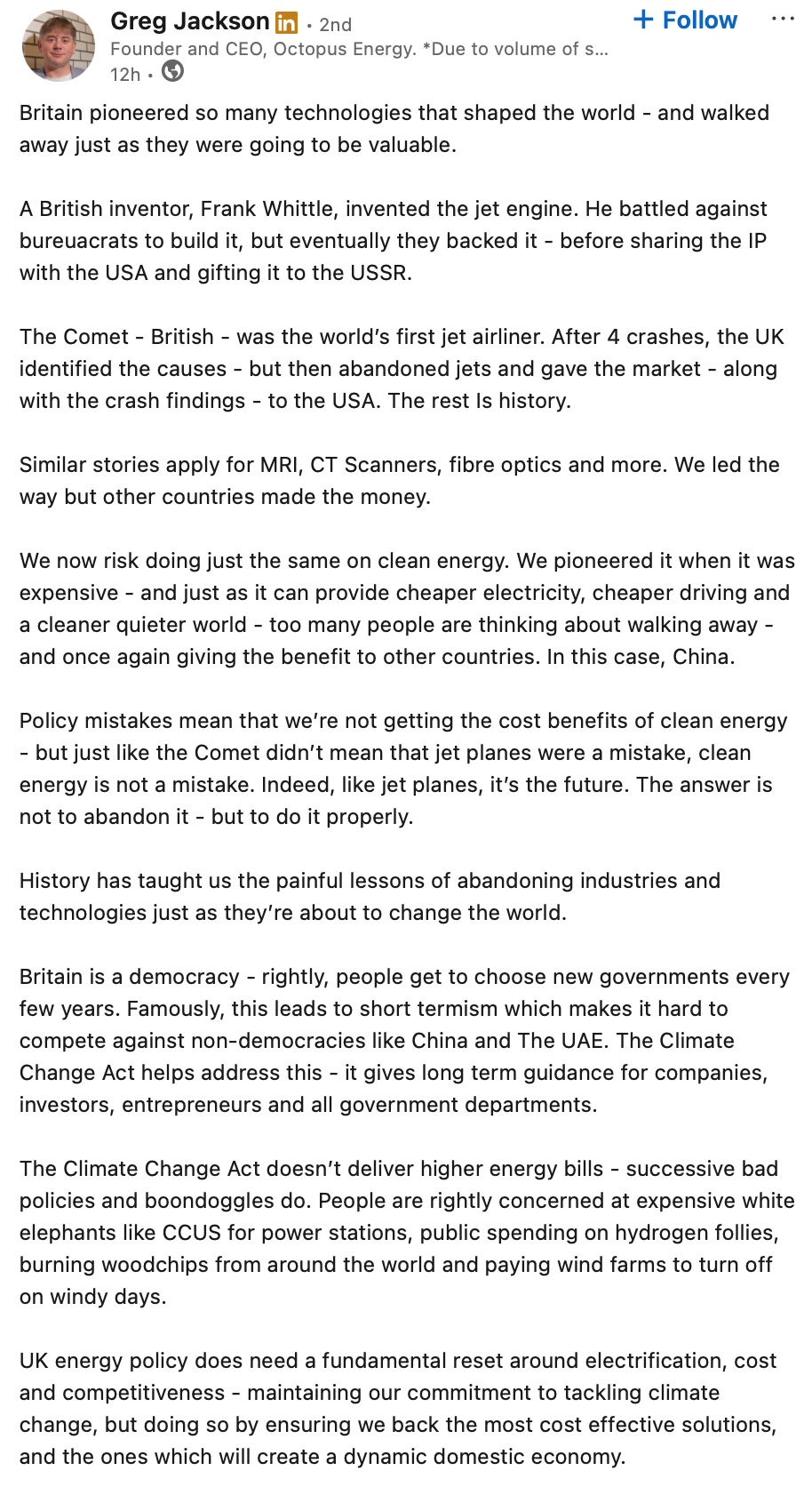 Greg Jackson's LinkedIn posts reflect his personal and professional principles at Octopus. They appear to be self-authored.